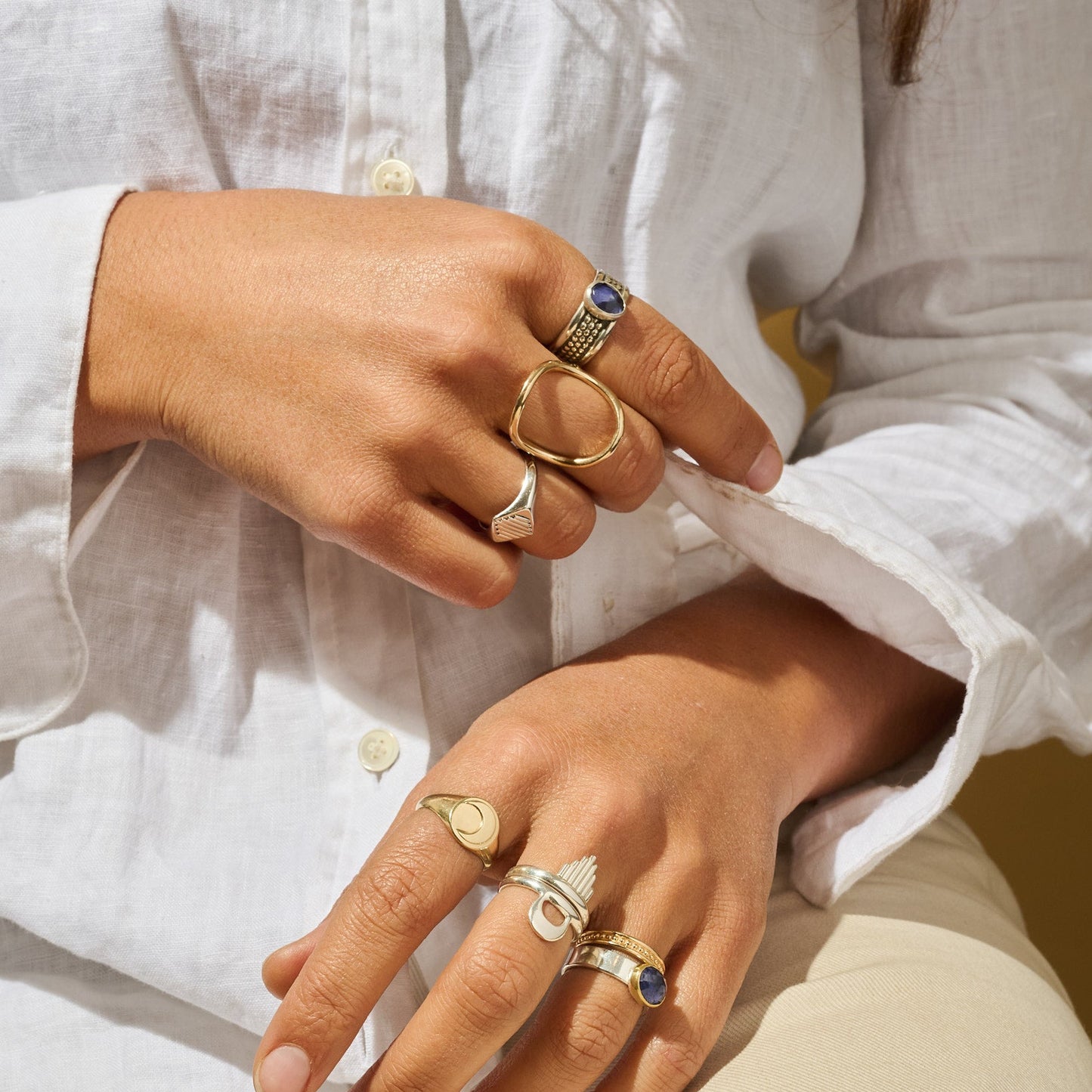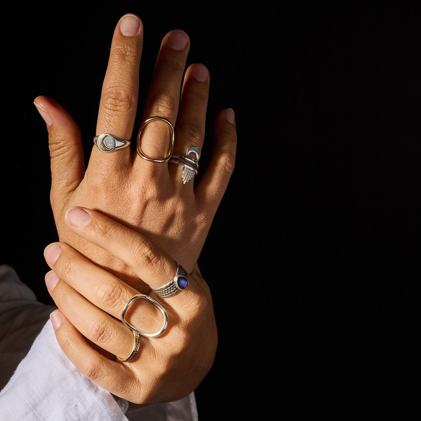 Each piece is designed for everyday wear and built with symbolic detail, offering jewelry that feels considered, substantial, and easy to live in.